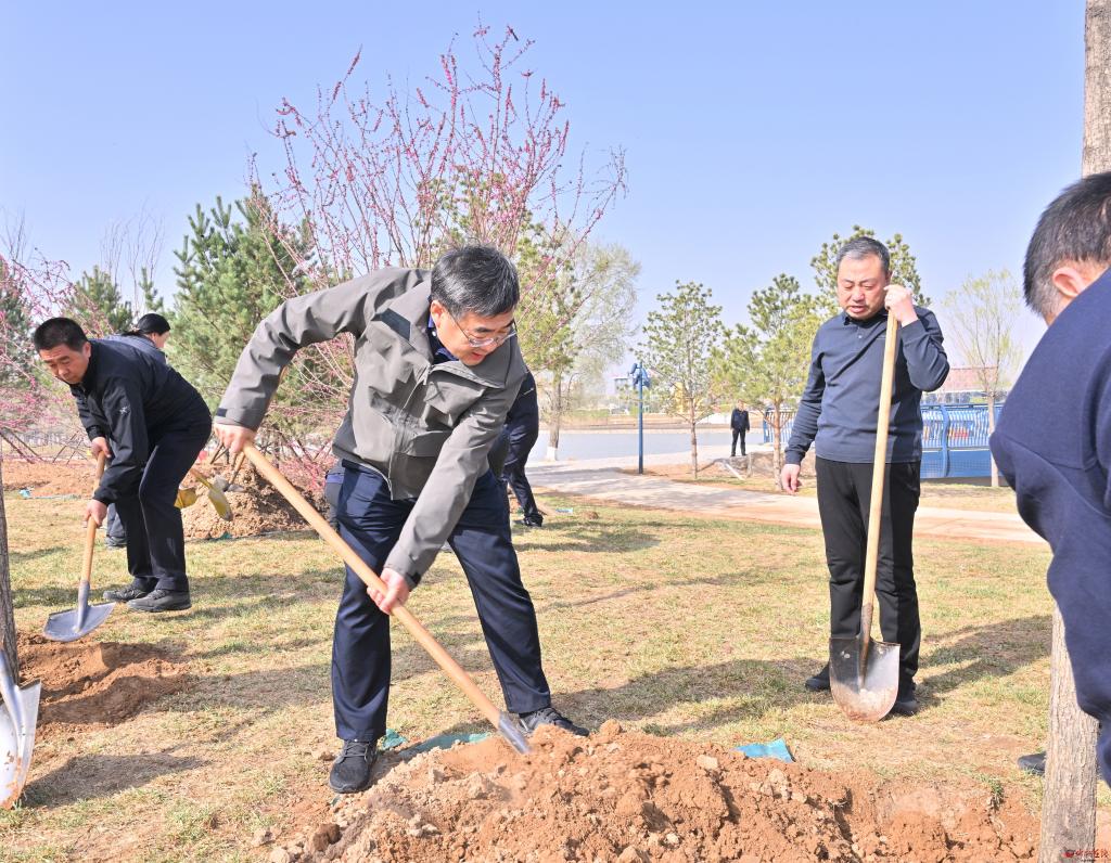 暮春時(shí)節(jié),草木吐綠、萬(wàn)物萌發(fā)。朱曉東等市領(lǐng)導(dǎo)一到植樹(shù)點(diǎn),就拿起鐵鍬等植樹(shù)工具,與大家一起扶正樹(shù)苗、揮鍬鏟土、培土圍堰、提桶澆水,現(xiàn)場(chǎng)一派干勁十足、熱火朝天的景象。朱曉東一邊植樹(shù),一邊詢問(wèn)苗木品種特點(diǎn)、日常養(yǎng)護(hù)等情況,叮囑有關(guān)部門(mén)人員要做好苗木管護(hù)工作,提高植樹(shù)成活率。在大家的共同努力下,新栽下的樟子樹(shù)、榆葉梅、油松、山杏等苗木迎風(fēng)招展、生機(jī)盎然。