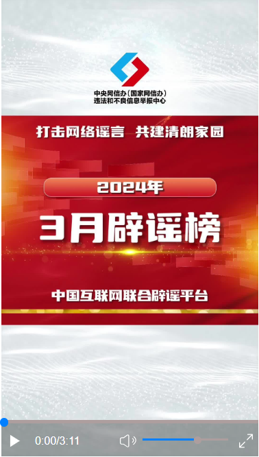 打擊網(wǎng)絡謠言 共建清朗家園 中國互聯(lián)網(wǎng)聯(lián)合辟謠平臺2024年3月辟謠榜