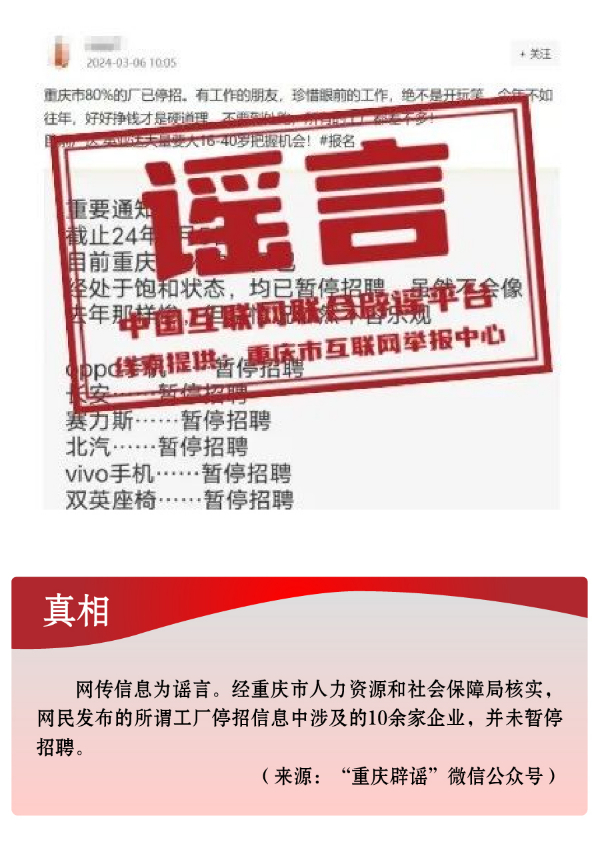 重慶80%的工廠暫停招聘?