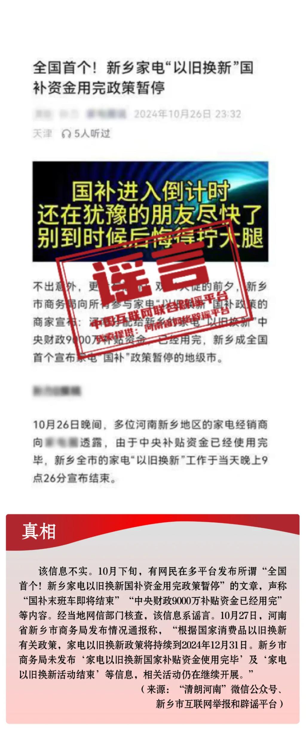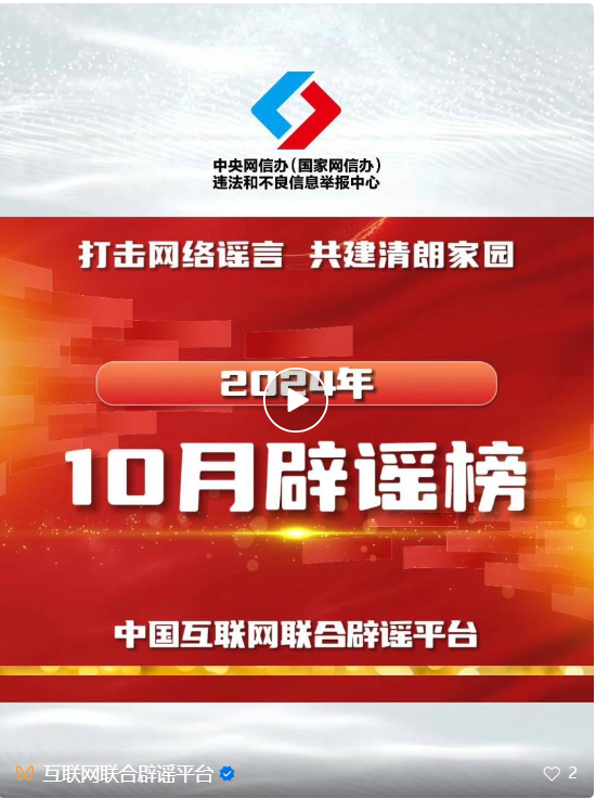 打擊網(wǎng)絡(luò)謠言 共建清朗家園 中國互聯(lián)網(wǎng)聯(lián)合辟謠平臺2024年10月辟謠榜