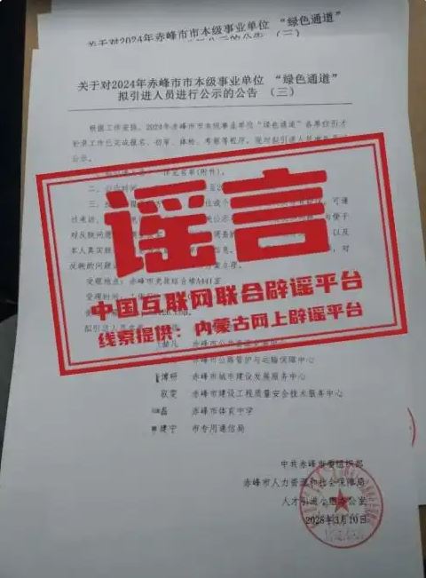 辟謠:內(nèi)蒙古赤峰市人力資源和社會保障局發(fā)布嚴正聲明