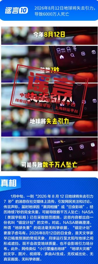??健康與科普領(lǐng)域謠言違背客觀規(guī)律?!叭搜椎鞍资恰黾用庖吡Α姆▽殹笨桃饪浯笤撎幏剿幍呐R床用途,忽略其特定醫(yī)療場景與使用風(fēng)險;所謂“大棚草莓、冷庫葡萄、進(jìn)口車?yán)遄印⑷旧疤情偈嵌焖缢拇蠖就酢敝{言片面解讀農(nóng)產(chǎn)品種植與保鮮方式,缺乏科學(xué)依據(jù);“四川兩只雄性大熊貓首次成功自然交配”純屬為吸引流量而捏造的獵奇內(nèi)容,其視頻畫面為AI生成;“2026年8月12日地球?qū)⑹ヒ?,?dǎo)致6000萬人死亡”更是無中生有的荒謬謠言。