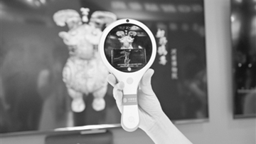 2021中國(guó)國(guó)際數(shù)字經(jīng)濟(jì)博覽會(huì)工作人員展示通過(guò)AR探索鏡掃描獲取文物相關(guān)信息 新華社記者 金皓原 攝