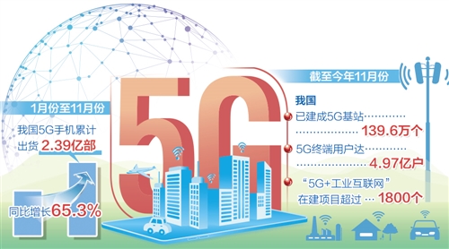 我國5G網(wǎng)絡(luò)建設(shè)和應(yīng)用正加速推進(jìn)。截至今年11月份,已建成5G基站139.6萬個(gè),5G終端用戶達(dá)到4.97億戶,“5G+工業(yè)互聯(lián)網(wǎng)”在建項(xiàng)目超過1800個(gè)。