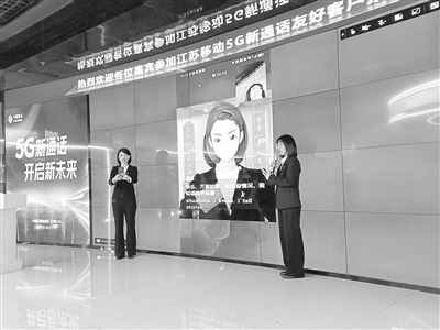 “5G新通話”友好客戶招募活動(dòng)現(xiàn)場(chǎng),工作人員演示5G新通話創(chuàng)新應(yīng)用。記者 金鳳攝