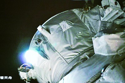5月11日在北京航天飛行控制中心拍攝的天舟六號貨運(yùn)飛船與空間站組合體完成交會對接的畫面。新華社記者 郭中正攝