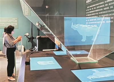 在“數(shù)說犀尊”展覽上,展廳綜合運用了高清三維掃描、超高清顯示、人工智能、紅外感應(yīng)、增強(qiáng)現(xiàn)實等科技手段展示文物研究成果??萍既請笥浾?洪星攝