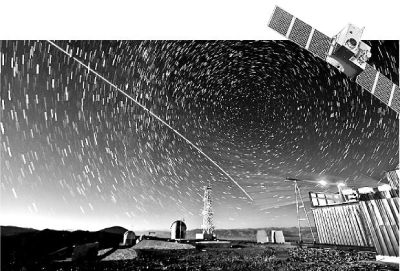 “墨子號(hào)”量子科學(xué)實(shí)驗(yàn)衛(wèi)星與阿里量子隱形傳態(tài)實(shí)驗(yàn)平臺(tái)建立天地鏈路(合成照片)。新華社發(fā)