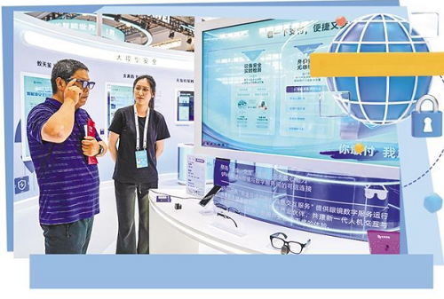 觀眾在云南昆明舉行的2025年國家網(wǎng)絡(luò)安全宣傳周配套活動上體驗(yàn)智能眼鏡。新華社記者 彭奕凱攝