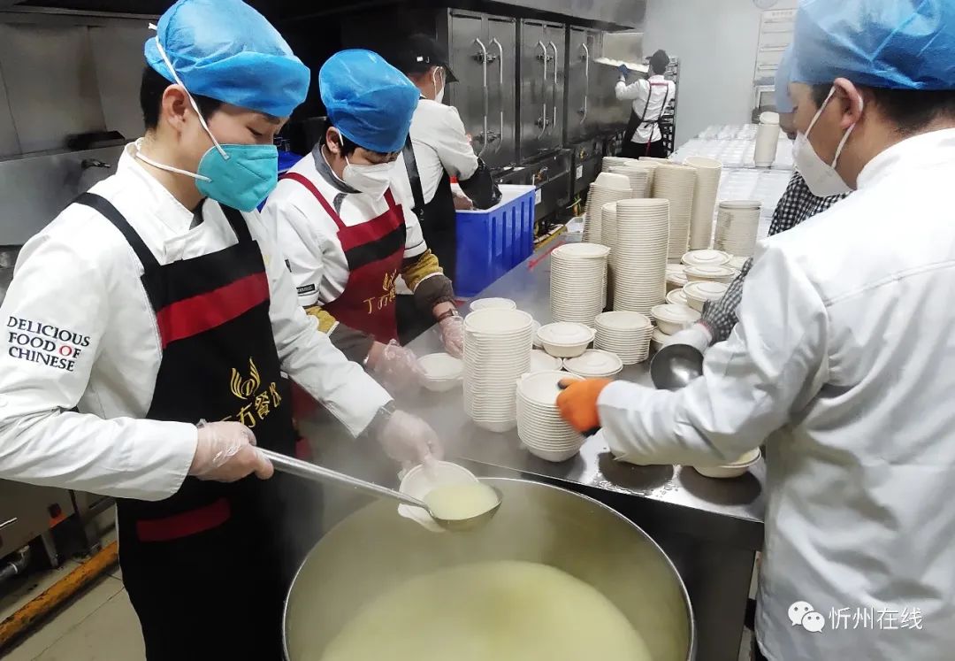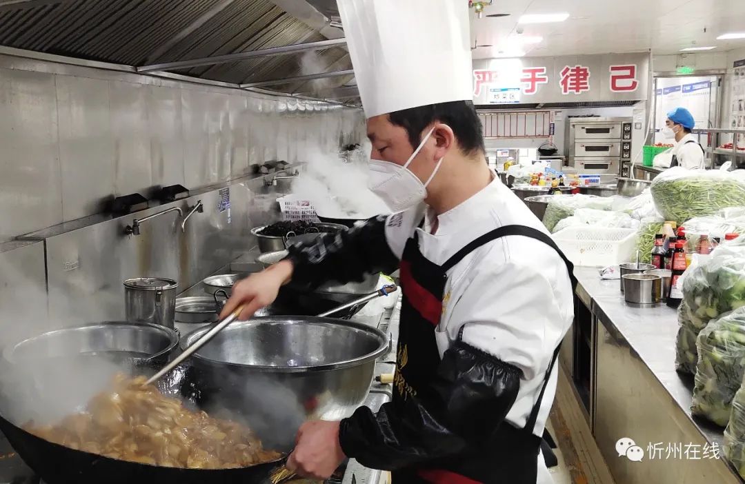 紅燒肉、過(guò)油肉、涼拌菜……12月2日下午,忻州丁方文化餐飲管理有限公司的廚師們正在有序忙碌著,一道道剛出鍋的飯菜被分餐員迅速分裝、打包、裝箱,他們要趕在18點(diǎn)之前送往忻州市級(jí)方艙醫(yī)院。