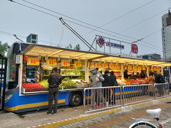 早上8點(diǎn),走出柳芳地鐵站,記者就看到一輛充滿公交車元素的“小型菜場”,前來買菜的人絡(luò)繹不絕?!耙郧敖?jīng)常網(wǎng)購水果,送過來都不太新鮮了,現(xiàn)在出門就能買,新鮮還實(shí)惠?!闭谔暨x水果的蔡阿姨說。