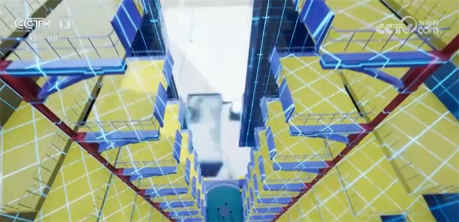 90多米高的廠房一通到頂,中間有十多層工作平臺,方便工作人員進行操作。