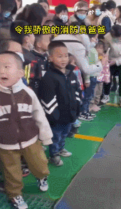 一名小男孩認出消防員爸爸后