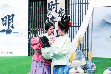 近日,山西傳媒學(xué)院在太原市萬柏林區(qū)萬象城下沉廣場(chǎng)舉辦了“漢服印象”傳統(tǒng)服飾教學(xué)成果展演?;顒?dòng)現(xiàn)場(chǎng),35名來自該校的大二學(xué)生,均身著漢、唐、宋、明等朝代的服飾,向現(xiàn)場(chǎng)的觀眾展示了60套獨(dú)具特色的原創(chuàng)設(shè)計(jì)作品,并進(jìn)行了沉浸式國風(fēng)走秀教學(xué)成果展演和氣氛熱烈的古詩詞問答互動(dòng)節(jié)目。