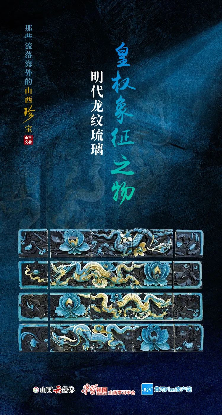 龍是中國古代吉祥如意和皇權(quán)的象征。山西在明代時期對琉璃技術(shù)的制作非常成熟,各種圖案的裝飾琉璃部件十分普遍。這一組二十塊的釉面瓷磚,打造于15至16世紀(jì)的山西,最初應(yīng)該來自兩個不同的寺廟建筑。