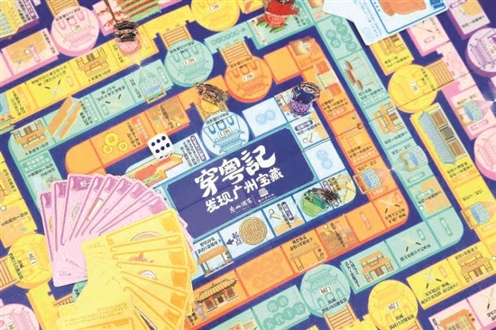 如廣州酒家集團與廣州博物館共同開發(fā)的“穿粵記——發(fā)現(xiàn)廣州寶藏”廣州城市手信文創(chuàng)禮盒,廣州博物館根據(jù)廣州城市歷史發(fā)展特征,結(jié)合學術(shù)研究成果和教育推廣經(jīng)驗,設(shè)計開發(fā)了“穿粵記”桌游。此桌游在玩法上借鑒了堪稱中國最早桌游的《升官圖》以及現(xiàn)代經(jīng)典桌游《大富翁》,再配上由廣州酒家集團非遺粵點大師團隊結(jié)合嶺南佳果特色口味與現(xiàn)代輕養(yǎng)生主題精心打造的新廣式糕點,讓大家共同領(lǐng)略嶺南源遠流長的飲食文化。