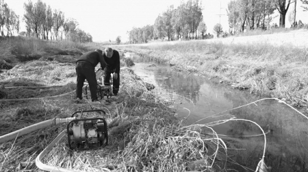 3.在高平市寺莊鎮(zhèn)市望村河道邊,兩臺(tái)抽水機(jī)馬力全開(kāi),河水化作“及時(shí)雨”涌入麥田。