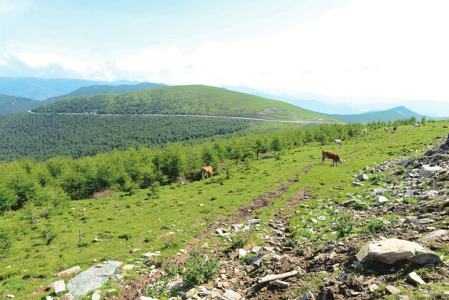 五臺山亞高山帶生長嵩草草甸和凍原生態(tài)景觀。