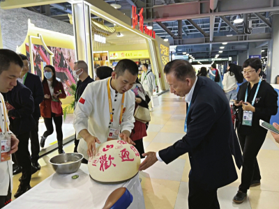 “此次參會,山西會務(wù)集團特別準備了近年推陳出新、改良工藝的美食新品,希望以美食為載體,以文化為橋梁,讓更多人了解山西、走進山西、愛上山西、投資山西。”王春華說,“從連續(xù)幾天觀眾的反饋來看,山西刀削面、莜面栲栳栳最受大家歡迎,每天都有人排長隊品嘗,可以說供不應(yīng)求。此外,酥脆香甜的原平鍋盔、用石子炒制的石頭餅、精心烘焙的黃花餅、經(jīng)典小吃柳林碗托等都是觀眾愛吃的‘爆款’,再配合精彩的面食表演,來往客商連連點贊,直呼好吃好看。”
