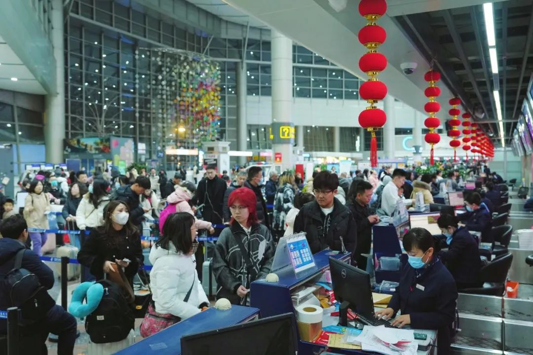 太原機場候車大廳內(nèi),人流如織,工作人員有條不紊地幫旅客辦理乘機手續(xù),保障她們準(zhǔn)點登機、早日回家。