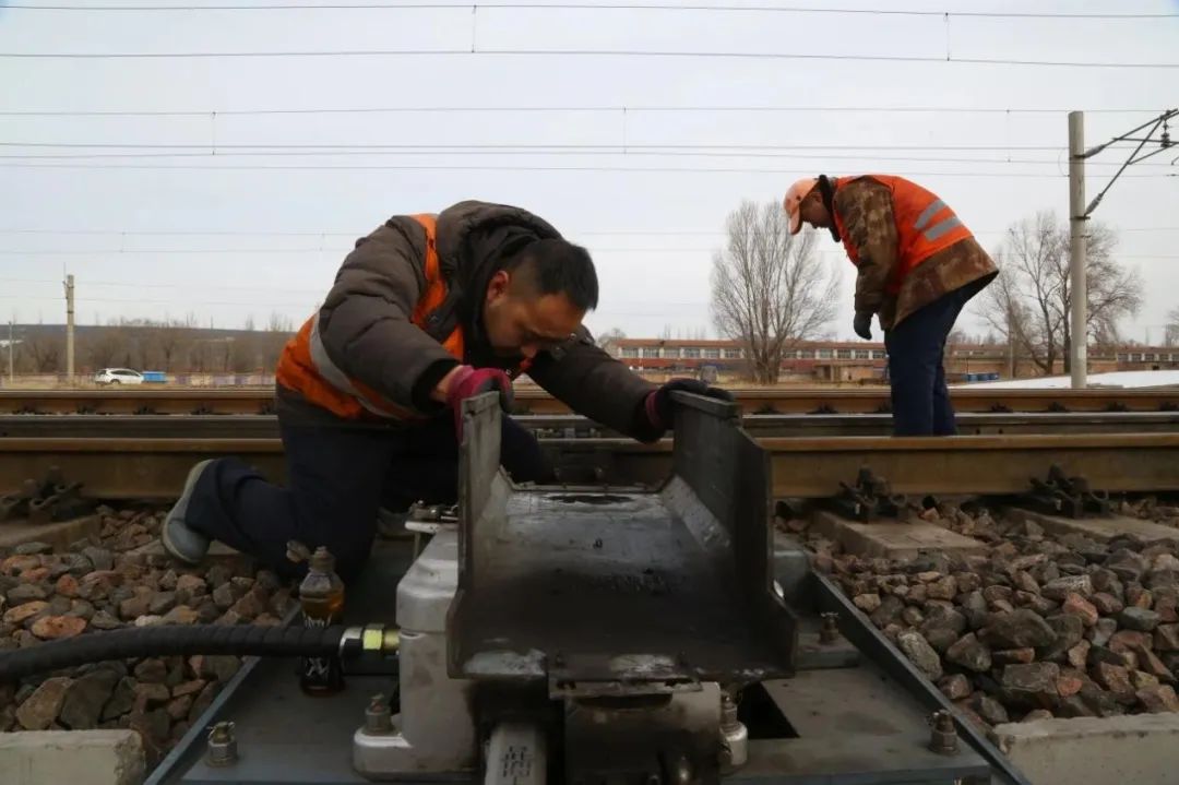 “放上木楔子,把道岔清理干凈!”為了保障春運期間道岔平穩(wěn)運行、列車安全暢通,鐵路信號工們加大道岔檢修力度,左手一把膩子鏟、右手一瓶機油,為道岔進行清潔保養(yǎng)。