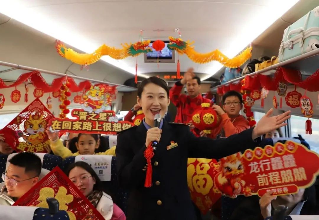春運首日,太原客運段各次列車圍繞“龍行龘龘 旅程暖暖”主題,開展了精彩紛呈、喜慶熱鬧的列車文化活動?;丶衣飞希覀儾还聠?。