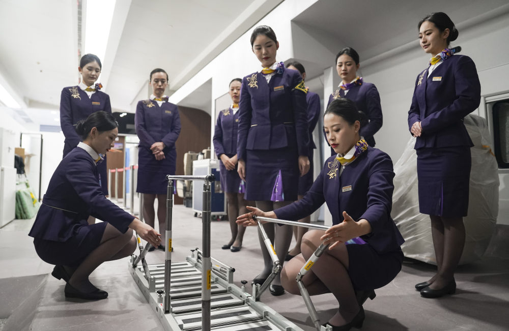 1月10日,鐵路上海客運(yùn)段高鐵一車隊(duì)乘務(wù)人員在列車模擬艙內(nèi)開展應(yīng)急演練培訓(xùn)。新華社發(fā)(程志兵攝)