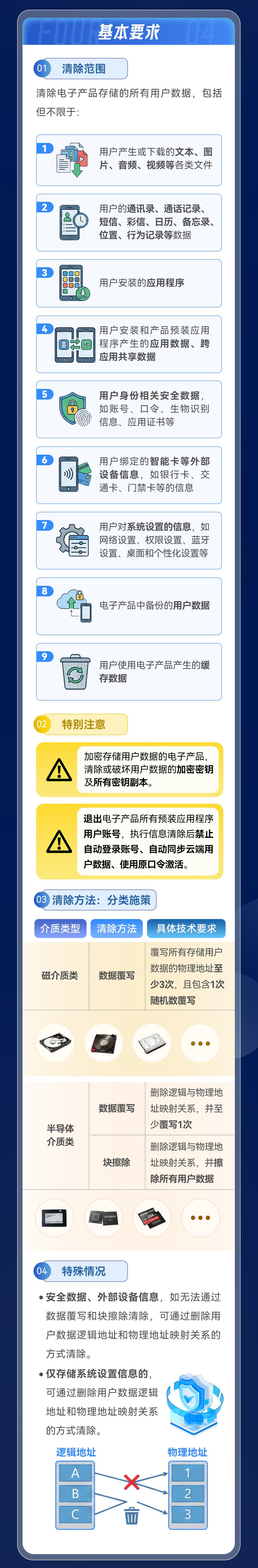 這項(xiàng)強(qiáng)制性國(guó)家標(biāo)準(zhǔn)的適用范圍涵蓋了在我國(guó)境內(nèi)生產(chǎn)、銷(xiāo)售的各類(lèi)具有非易失性存儲(chǔ)介質(zhì)的電子產(chǎn)品,包括手機(jī)、平板電腦、筆記本電腦、臺(tái)式計(jì)算機(jī),以及智能穿戴設(shè)備、辦公設(shè)備等。其約束對(duì)象既包括電子產(chǎn)品制造商、技術(shù)服務(wù)提供方,也包括二手電子產(chǎn)品回收經(jīng)營(yíng)者。