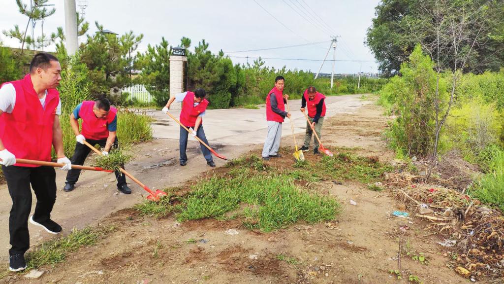 活動(dòng)中,氣象志愿者們身著紅馬甲,相互配合,有的除雜草,有的拾垃圾,對所轄社區(qū)內(nèi)衛(wèi)生死角進(jìn)行了徹底清理。 段永升 攝