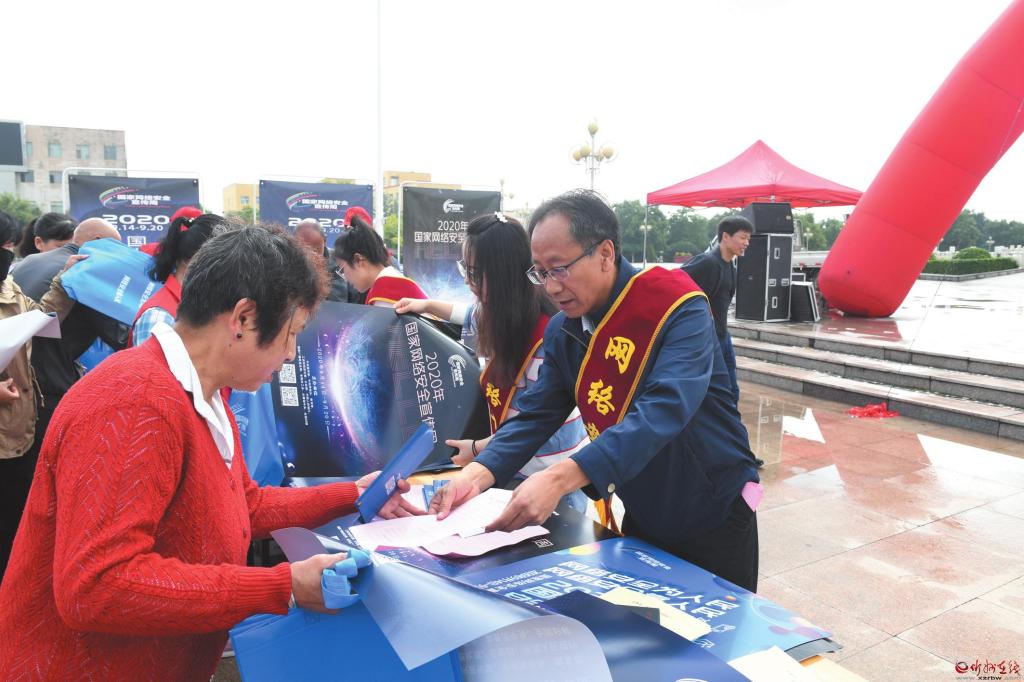 在2020年國家網(wǎng)絡(luò)安全宣傳周活動中,定襄縣采取多部門聯(lián)合的方式,通過懸掛宣傳橫幅、擺放宣傳展板、發(fā)放網(wǎng)絡(luò)安全知識手冊等形式,深入宣傳數(shù)據(jù)安全管理、個(gè)人信息保護(hù)等方面的法規(guī)、標(biāo)準(zhǔn),并重點(diǎn)圍繞個(gè)人信息保護(hù)、網(wǎng)上交易辦理、惡意軟件清理、金融詐騙防范等市民關(guān)心關(guān)注的內(nèi)容開展宣講、提供咨詢服務(wù),切實(shí)提高廣大人民群眾網(wǎng)絡(luò)安全意識和防護(hù)技能,引導(dǎo)廣大群眾依法用網(wǎng)、文明用網(wǎng),營造健康文明的網(wǎng)絡(luò)環(huán)境。圖為9月15日縣城宣傳現(xiàn)場。 張玉虎 攝