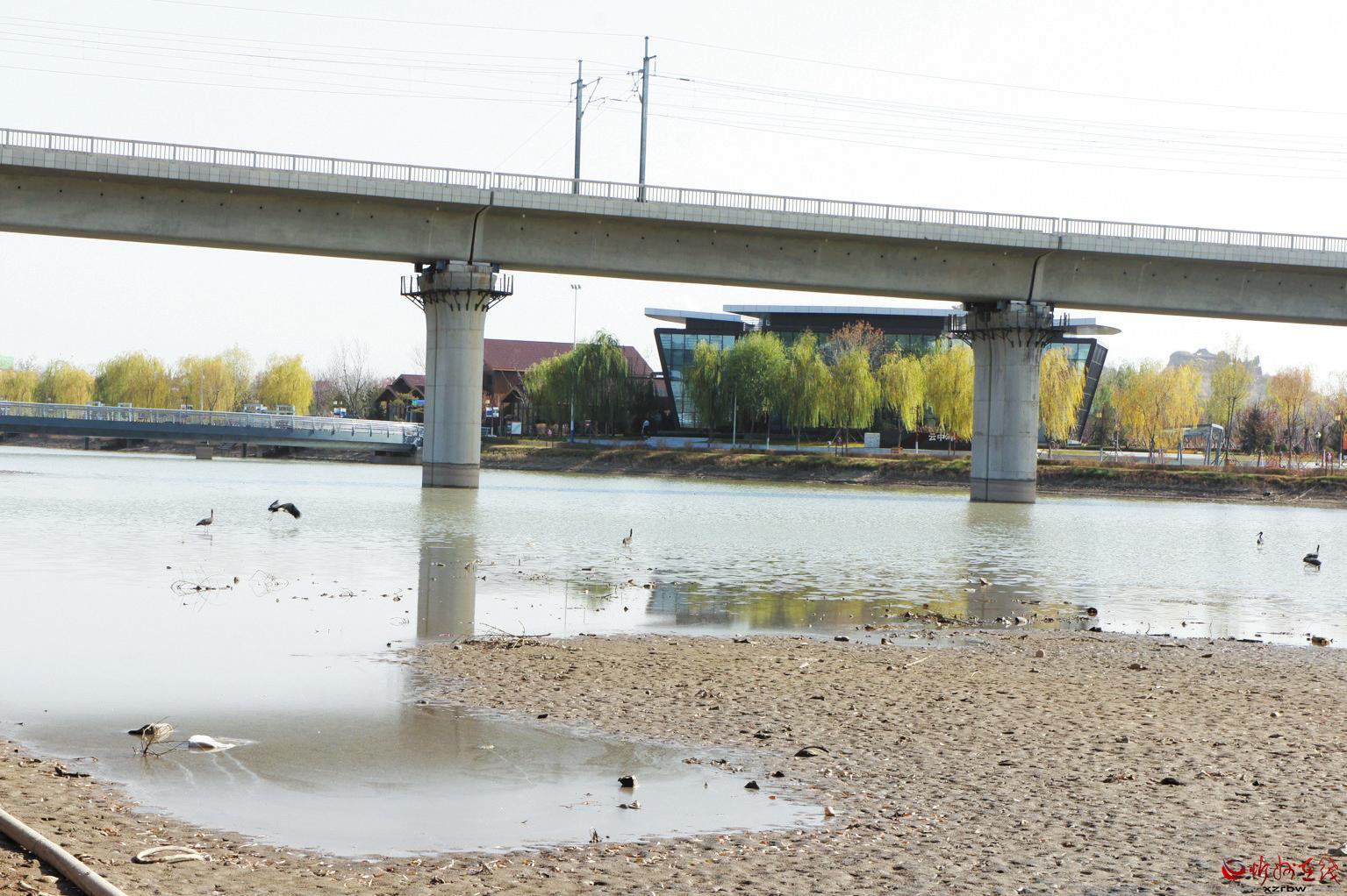 11月7日,數(shù)只黑鸛在云中河景區(qū)高速鐵路橋下涉水覓食。我市在加大城市基礎(chǔ)設(shè)施建設(shè)的同時(shí),公園和綠地的建設(shè)同步提速,極大地改善了人居環(huán)境。優(yōu)美的環(huán)境不僅提高了居民的生活質(zhì)量,也吸引了野生鳥(niǎo)類棲息。 (張劍雄 攝)