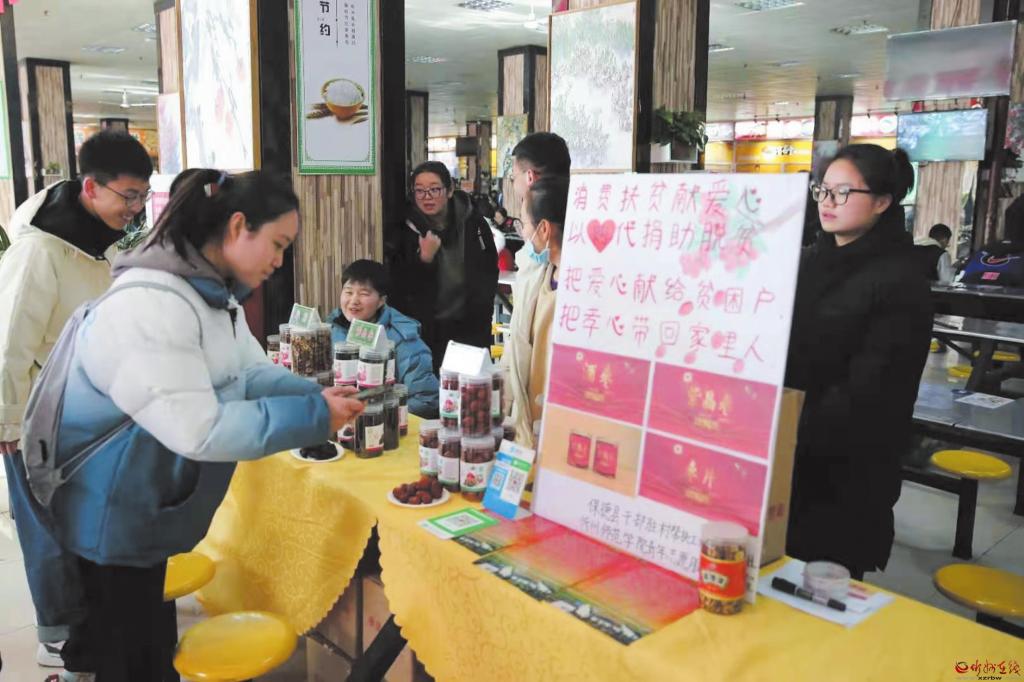 “以購代捐”活動(dòng)改變了以往的捐贈(zèng)模式,讓定點(diǎn)幫扶村的產(chǎn)品變成了商品,有效解決了農(nóng)產(chǎn)品銷路問題,既激發(fā)了農(nóng)民群眾努力生產(chǎn)、勤勞致富的積極性,又拉近了廣大師生與農(nóng)民的距離,形成了“我勤勞、我致富”“我參與、我幸?!钡牧己梅諊?。 (武大力)