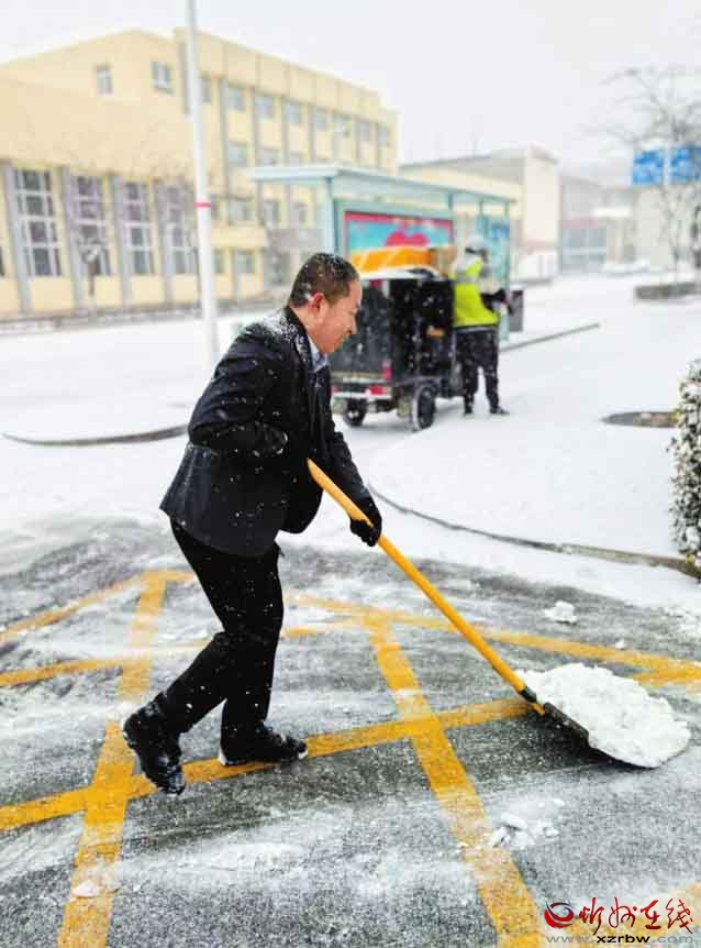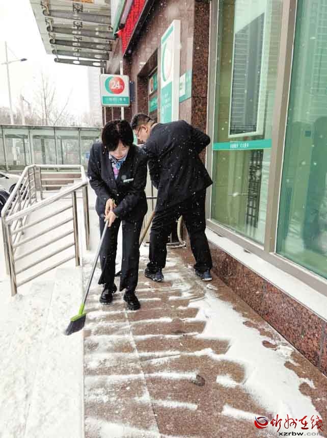 面對我市首場強(qiáng)降雪,農(nóng)行忻州分行員工以雪為令,及時(shí)清掃網(wǎng)點(diǎn)及周邊區(qū)域,確保服務(wù)通道暢通無阻,以實(shí)際行動(dòng)傳遞了溫暖的金融服務(wù)。(殷俊攝)