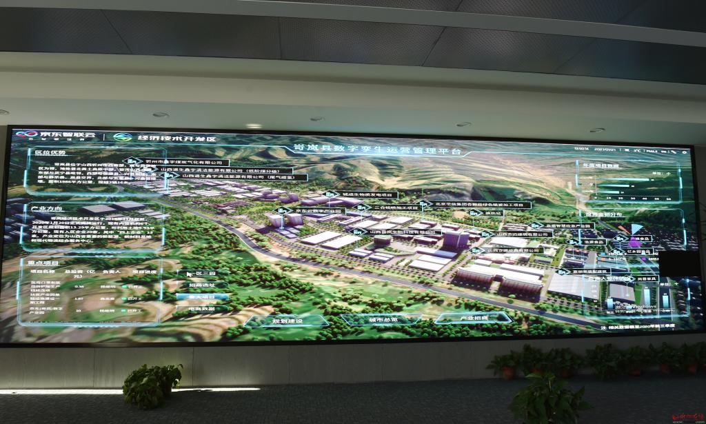 在位于岢嵐縣融媒體中心的項目臨時辦公地,對著占滿一堵墻的大屏幕,記者聽取了京東(岢嵐)有關(guān)業(yè)務(wù)工作人員的情況介紹。