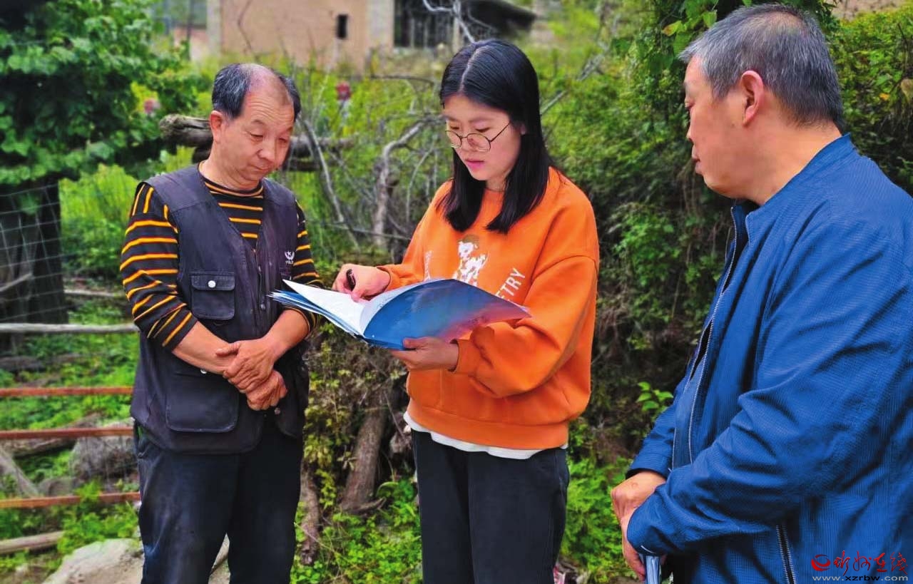 到村工作大學(xué)生孫苗苗為老黨員送學(xué)上門。