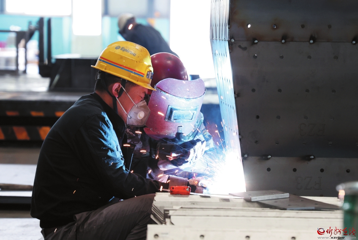 在久力科技的機(jī)械加工車間,工作人員正在對零部件進(jìn)行焊接作業(yè)。記者范琛攝