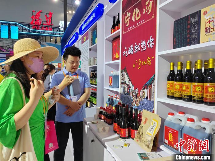 外地參展商品嘗山西老陳醋。高雨晴 攝 “這是八義窯紅綠彩首次亮相消博會?!鄙轿鏖L治八義窯紅綠彩陶瓷文化有限公司工作人員牛佳寧告訴記者,此次博覽會共展出60余件展品,包括茶具、餐具、文創(chuàng)、“齊樂龍龍”等系列,“借助消博會尋找商機的同時,讓更多人了解八義窯紅綠彩”。