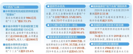 “十四五”全省落實水利建設投資986億元,較“十三五”增長73.3%,2023年、2024年年均突破200億元;今年1月—11月完成水利投資210億元,同比增長13.5%。水利落實和完成投資持續(xù)呈現(xiàn)“雙增長”良好態(tài)勢。