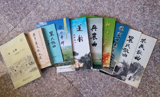 成員們的執(zhí)著與熱愛也結(jié)出了累累碩果。16年來,原平農(nóng)民散曲社陸續(xù)自費編輯出版了《興農(nóng)曲》《鐵血豐碑》《農(nóng)民散曲選》《田籟之歌》等10多冊農(nóng)民詩曲集,免費發(fā)給群眾閱讀;先后共創(chuàng)作散曲作品4萬余首,在省級以上書報刊物發(fā)表作品4000余首;噴繪展板300余幅,在各鄉(xiāng)村農(nóng)貿(mào)集市、戲場、廟會、婚慶等場地懸掛展出宣講200多場次,受眾達(dá)2萬人以上;利用現(xiàn)代網(wǎng)絡(luò)創(chuàng)辦微刊,現(xiàn)已發(fā)表作品300余期,在弘揚(yáng)和發(fā)展中華優(yōu)秀傳統(tǒng)文化中起到了事半功倍的作用。