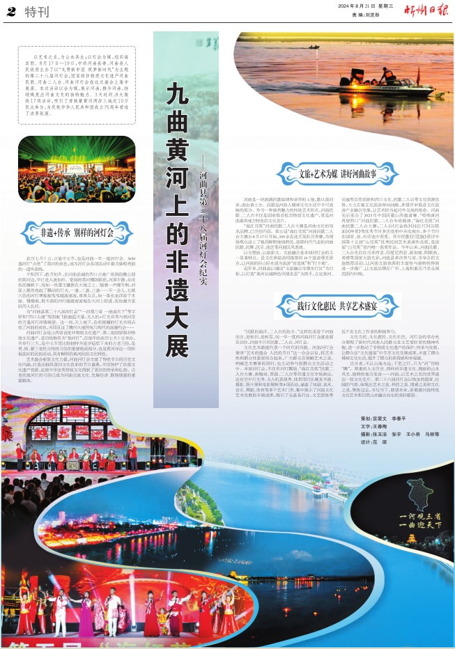 以藝術(shù)之名,與山水共生;以燈會(huì)為媒,迎四海賓朋。8月17日—19日,中共河曲縣委、河曲縣人民政府主辦了以“禮贊新中國(guó) 筑夢(mèng)新時(shí)代”為主題的第二十八屆河燈會(huì),國(guó)家級(jí)非物質(zhì)文化遺產(chǎn)河曲民歌、河曲二人臺(tái)、河曲河燈會(huì)在這次盛會(huì)上集中展演。本次活動(dòng)以會(huì)為媒,展示河曲,推介河曲,持續(xù)煥發(fā)出河曲文化的獨(dú)特魅力。3天時(shí)間,8大版塊17項(xiàng)活動(dòng),吸引了晉陜蒙黃河兩岸三地近10萬(wàn)民眾參與,為慶祝中華人民共和國(guó)成立75周年?duì)I造了濃厚氛圍。 非遺+傳承 別樣的河燈會(huì) 農(nóng)歷七月十五,正值中元節(jié),也是河曲一年一度河燈會(huì)。3650盞河燈“點(diǎn)亮”了黃河的夜色,成為河燈會(huì)各項(xiàng)活動(dòng)中最為獨(dú)特亮麗的一道風(fēng)景線。 夕陽(yáng)西下,皓月初升,在河曲縣城的西口古渡廣場(chǎng)到臨隩公園的黃河邊,早已是人流如織。寬闊的黃河橫臥眼前,河面平靜,在夜色的掩映下,宛如一塊墨玉鑲嵌在大地之上。隨著一聲爆竹響,河面上驟然亮起了飄動(dòng)的燈火,一盞、二盞、三盞……不一會(huì)兒,五顏六色的河燈便搖搖曳曳隨波逐流,星星點(diǎn)點(diǎn),如一條長(zhǎng)龍浮游于水面。慢慢地,數(shù)不清的河燈疏疏密密地在大河上輕漾,猶如漫天星辰瀉入長(zhǎng)河。 當(dāng)“河曲縣第二十八屆河燈會(huì)”“一河觀三省 一曲迎天下”等字樣和“西口古渡”等圖案飛躍幽藍(lán)天幕,無(wú)人機(jī)+燈光雙秀與黃河里的萬(wàn)盞河燈深情凝望。這一刻,天上地下,色彩斑斕的燈光共同點(diǎn)亮了河曲的夜色,共同見(jiàn)證了隩州大地傳統(tǒng)與現(xiàn)代的浪漫約會(huì)…… 河曲河燈會(huì)是山西省首批非物質(zhì)文化遺產(chǎn)、第二批國(guó)家級(jí)非物質(zhì)文化遺產(chǎn),老百姓稱(chēng)其為“放河燈”,在每年的農(nóng)歷七月十五舉辦,共舉行三天,是中元節(jié)里比較獨(dú)特并逐步延續(xù)下來(lái)的古老習(xí)俗,是晉、陜、蒙三省民眾傳統(tǒng)習(xí)俗的重要組成部分,也是黃河岸邊一項(xiàng)祈福美好的民俗活動(dòng),具有鮮明的黃河民俗文化特色。 藝術(shù)盛會(huì)彰顯文化力量,河曲河燈會(huì)豐富了傳統(tǒng)節(jié)日的歷史文化內(nèi)涵,打造出獨(dú)具黃河文化色彩的節(jié)日盛典,不僅保護(hù)了沿黃文化遺產(chǎn)資源,還使中華優(yōu)秀傳統(tǒng)文化得到了更好的傳承和弘揚(yáng)。古老的放河燈的習(xí)俗已成為河曲交流文化、發(fā)展經(jīng)濟(jì)、聯(lián)絡(luò)情感的重要載體。 文旅+藝術(shù)為媒 講好河曲故事 河曲是一塊灑滿民歌旋律和音符的土地,歌從黃河來(lái),曲由黃土生。民歌是河曲人精神文化生活中不可或缺的部分。作為一種獨(dú)具魅力的傳統(tǒng)藝術(shù)形式,河曲民歌、二人臺(tái)不僅是國(guó)家級(jí)首批非物質(zhì)文化遺產(chǎn),更是河曲最具地方特色的文化名片。 “海紅花獎(jiǎng)”河曲民歌二人臺(tái)大賽是河曲文化的知名品牌,已歷經(jīng)四屆。第五屆“海紅花獎(jiǎng)”河曲民歌二人臺(tái)大賽從8月17日開(kāi)始,100余名選手及隊(duì)員參賽,為現(xiàn)場(chǎng)觀眾送上了極具鮮明地域特色、濃郁時(shí)代氣息的河曲民歌、民舞、民樂(lè)、曲藝等河曲民風(fēng)表演。 以文塑旅、以旅彰文。文旅融合是本屆河燈會(huì)的又一顯著特點(diǎn)。縣文化和旅游局推薦的16個(gè)旅游觀光景點(diǎn),讓河曲的好山好水成為旅游“首選地”和”打卡地“。 近年來(lái),河曲縣以建設(shè)“文旅融合發(fā)展先行區(qū)”為目標(biāo),以打造“黃河長(zhǎng)城特色風(fēng)情名縣”為抓手,立足黃河、長(zhǎng)城等自然資源和西口文化、民歌二人臺(tái)等文化資源優(yōu)勢(shì),大力實(shí)施文化旅游牽動(dòng)戰(zhàn)略,多措并舉推進(jìn)文化旅游產(chǎn)業(yè)融合發(fā)展,讓藝術(shù)擔(dān)當(dāng)起對(duì)外交流的使命。河曲先后承辦了2023年中國(guó)民歌山西邀請(qǐng)賽、“唱響黃河 再望西口”河曲民歌、二人臺(tái)專(zhuān)場(chǎng)展演、“海紅花獎(jiǎng)”河曲民歌二人臺(tái)大賽;二人臺(tái)《打金錢(qián)》《掛紅燈》《壓糕面》《種菜》等優(yōu)秀節(jié)目多次亮相中央電視臺(tái),多個(gè)節(jié)目在國(guó)家、省、市評(píng)選中獲獎(jiǎng)。其中民歌《打藍(lán)靛》獲評(píng)中國(guó)第十五屆“山花獎(jiǎng)”優(yōu)秀民間藝術(shù)表演作品獎(jiǎng),是該屆“山花獎(jiǎng)”省內(nèi)唯一獲獎(jiǎng)作品。今年以來(lái),河曲民歌、二人臺(tái)先后在馬來(lái)西亞、印度尼西亞、新加坡、阿聯(lián)酋、希臘等國(guó)家大放光彩,河曲縣多次參與省、市舉辦的文旅推薦活動(dòng),讓河曲文旅資源的豐富性與獨(dú)特性得到進(jìn)一步推廣,讓文旅品牌在廣州、上海和重慶乃至全國(guó)范圍內(nèi)叫響。 踐行文化惠民 共享藝術(shù)盛宴 “民歌的海洋,二人臺(tái)的故鄉(xiāng)?!边@樣的美譽(yù)于河曲而言,是標(biāo)識(shí),是標(biāo)簽,而一年一度的河曲河燈會(huì)就是要告訴你,河曲不只有民歌、二人臺(tái)、河燈會(huì)。 文化藝術(shù)最能代表一個(gè)時(shí)代的風(fēng)貌。河曲河燈會(huì)秉承“藝術(shù)的盛會(huì) 