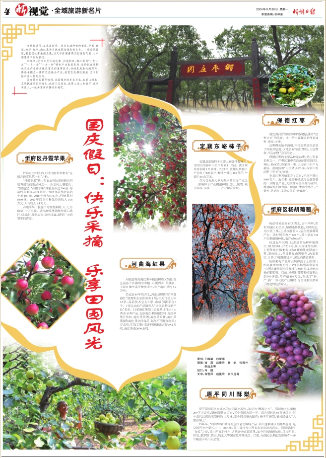 金秋好時節(jié),瓜果滿園香。我市各地種植的葡萄、蘋果、酥梨、柿子、紅棗、海紅果等名優(yōu)水果陸續(xù)成熟上市。一處處果園里,果農(nóng)們忙著采摘瓜果,空氣中彌漫著果實的香甜氣息,心中蕩漾著豐收的喜悅。