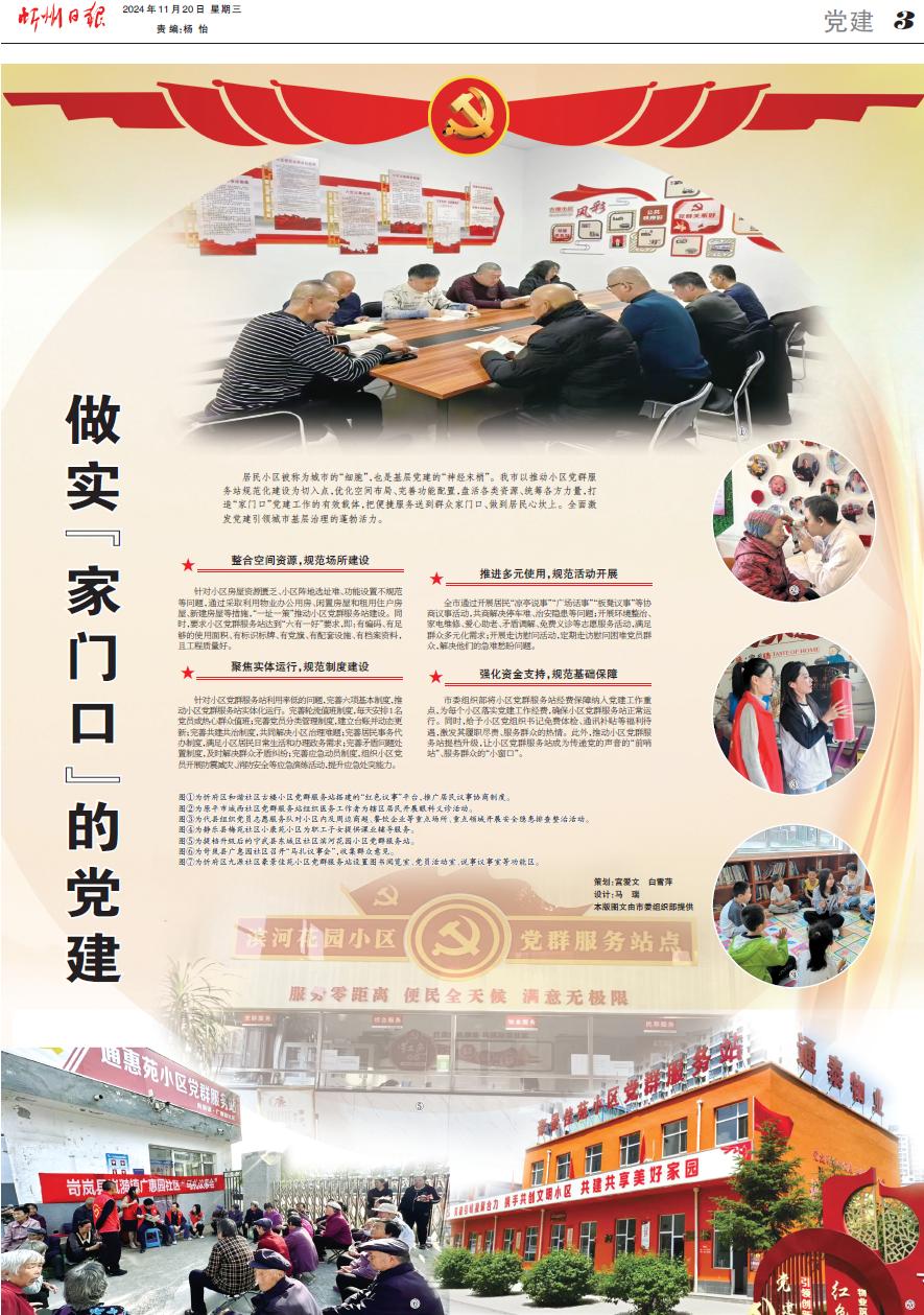 市委組織部將小區(qū)黨群服務(wù)站經(jīng)費(fèi)保障納入黨建工作重點(diǎn),為每個(gè)小區(qū)落實(shí)黨建工作經(jīng)費(fèi),確保小區(qū)黨群服務(wù)站正常運(yùn)行。同時(shí),給予小區(qū)黨組織書記免費(fèi)體檢、通訊補(bǔ)貼等福利待遇,激發(fā)其履職盡責(zé)、服務(wù)群眾的熱情。此外,推動(dòng)小區(qū)黨群服務(wù)站提檔升級,讓小區(qū)黨群服務(wù)站成為傳遞黨的聲音的“前哨站”、服務(wù)群眾的“小窗口”。