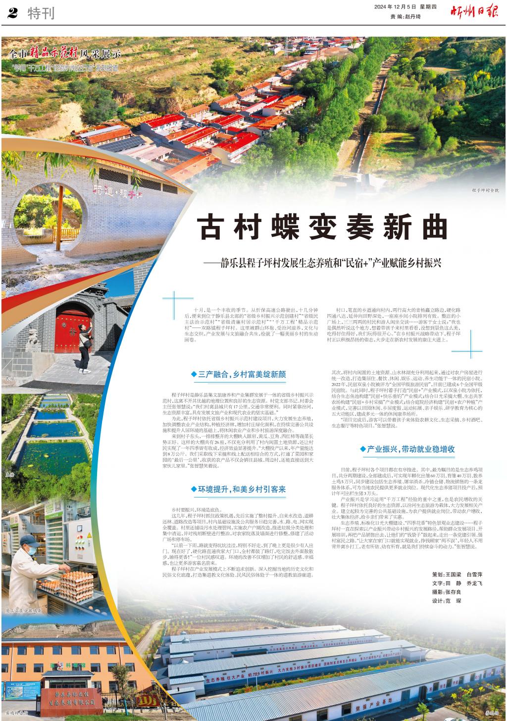 十月,是一個(gè)豐收的季節(jié)。從忻保高速公路駛出,十幾分鐘后,便來(lái)到位于靜樂(lè)縣北部的“省級(jí)鄉(xiāng)村振興示范創(chuàng)建村”“省級(jí)民主法治示范村”“省級(jí)清廉村居示范村”“‘千萬(wàn)工程’精品示范村”——雙路鎮(zhèn)程子坪村。這里被群山環(huán)抱、受汾河滋養(yǎng),文化與生態(tài)交織,產(chǎn)業(yè)發(fā)展與文旅融合共生,繪就了一幅美麗鄉(xiāng)村的生動(dòng)畫卷。