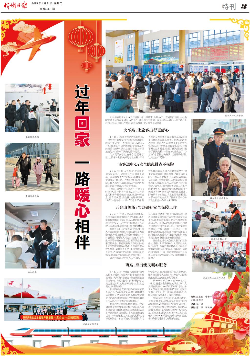 2025年春運于1月14日開啟到2月22日結(jié)束,為期40天。交通部門預測,全社會跨區(qū)域人員流動量將達90億人次,預計創(chuàng)歷史新高。春運情況如何?本報記者分赴我市火車站、機場、汽車站、高鐵站等地,帶大家直擊回家路。