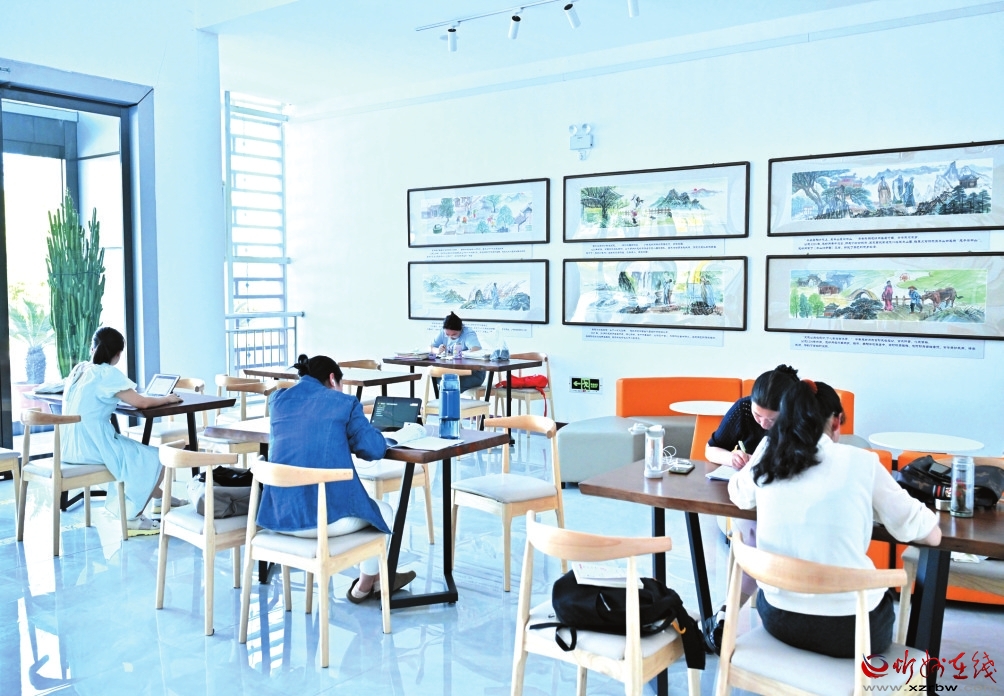 在公園遺山文化館一樓大廳設(shè)置純公益性的“城市書房”,配置免費(fèi)的直飲水機(jī)、儲(chǔ)物柜和休閑座椅。前不久,有位經(jīng)常在此復(fù)習(xí)的青年成功“上岸”,還特地和父母一起來公園表示感謝。