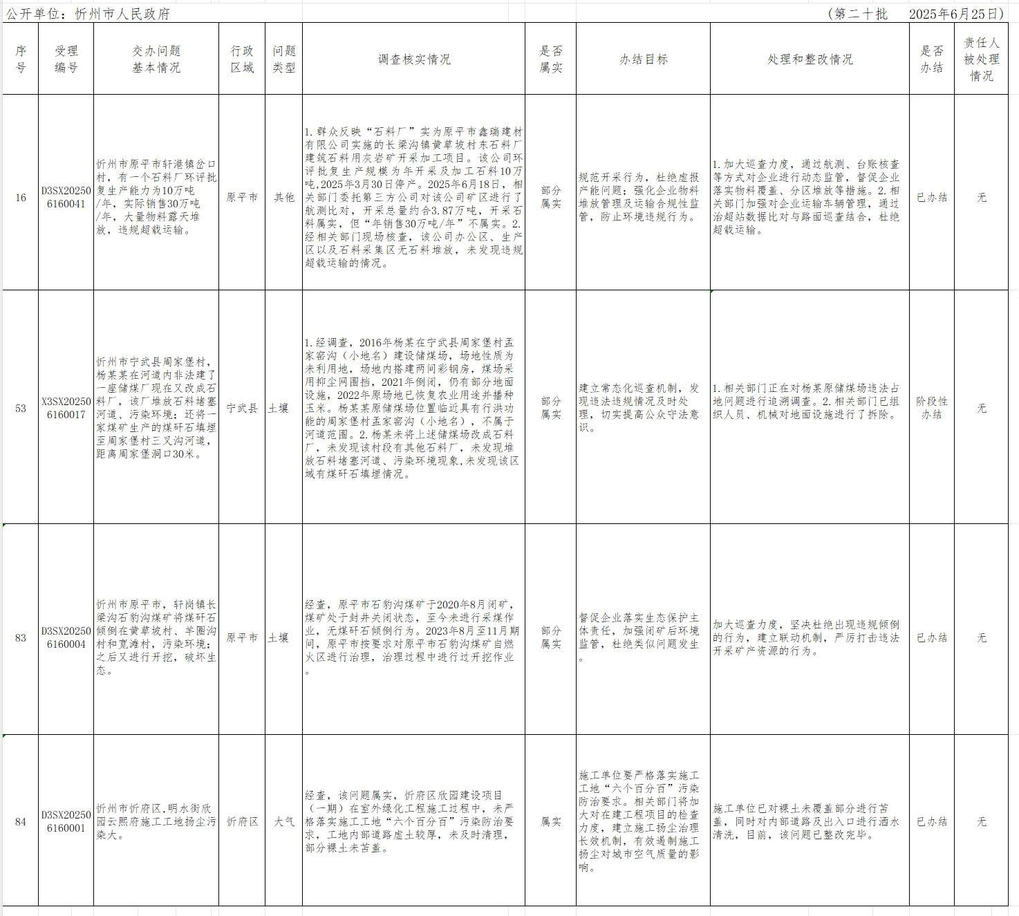 中央生態(tài)環(huán)境保護(hù)督察組群眾信訪舉報轉(zhuǎn)辦和邊督邊改公開情況一覽表(第二十批)