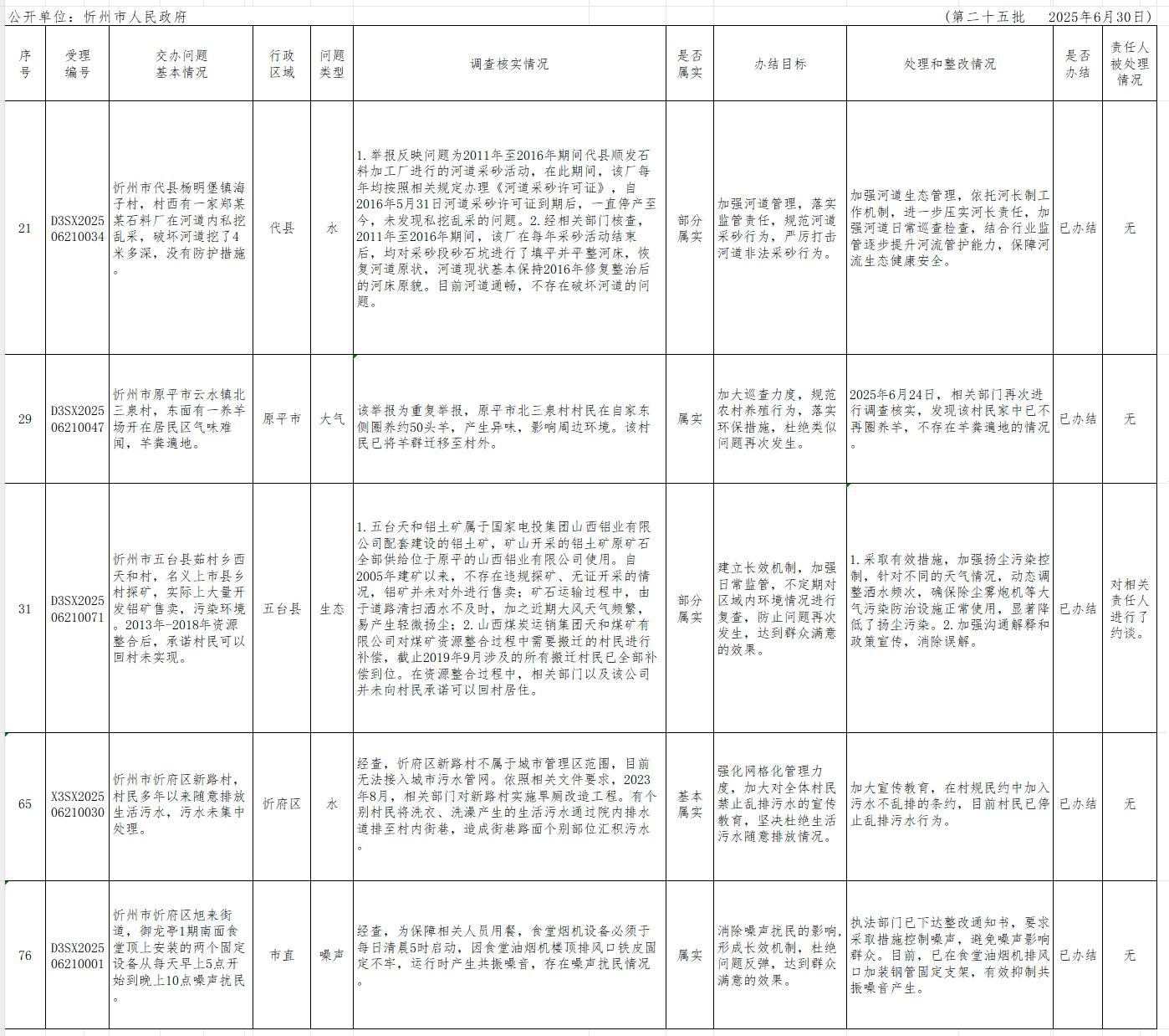 中央生態(tài)環(huán)境保護(hù)督察組群眾信訪舉報(bào)轉(zhuǎn)辦和邊督邊改公開情況一覽表(第二十五批)