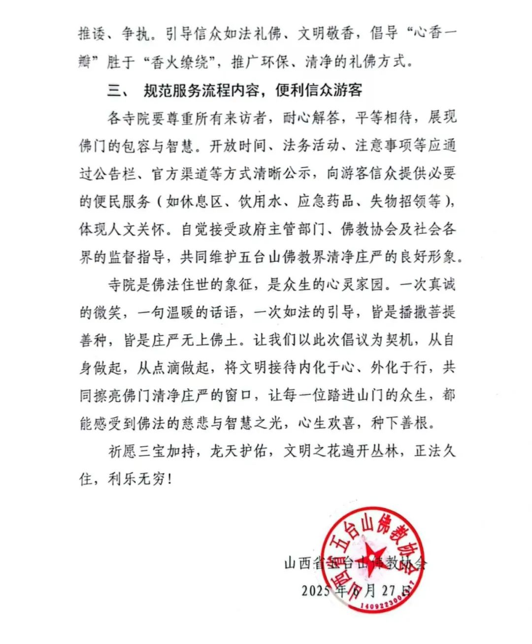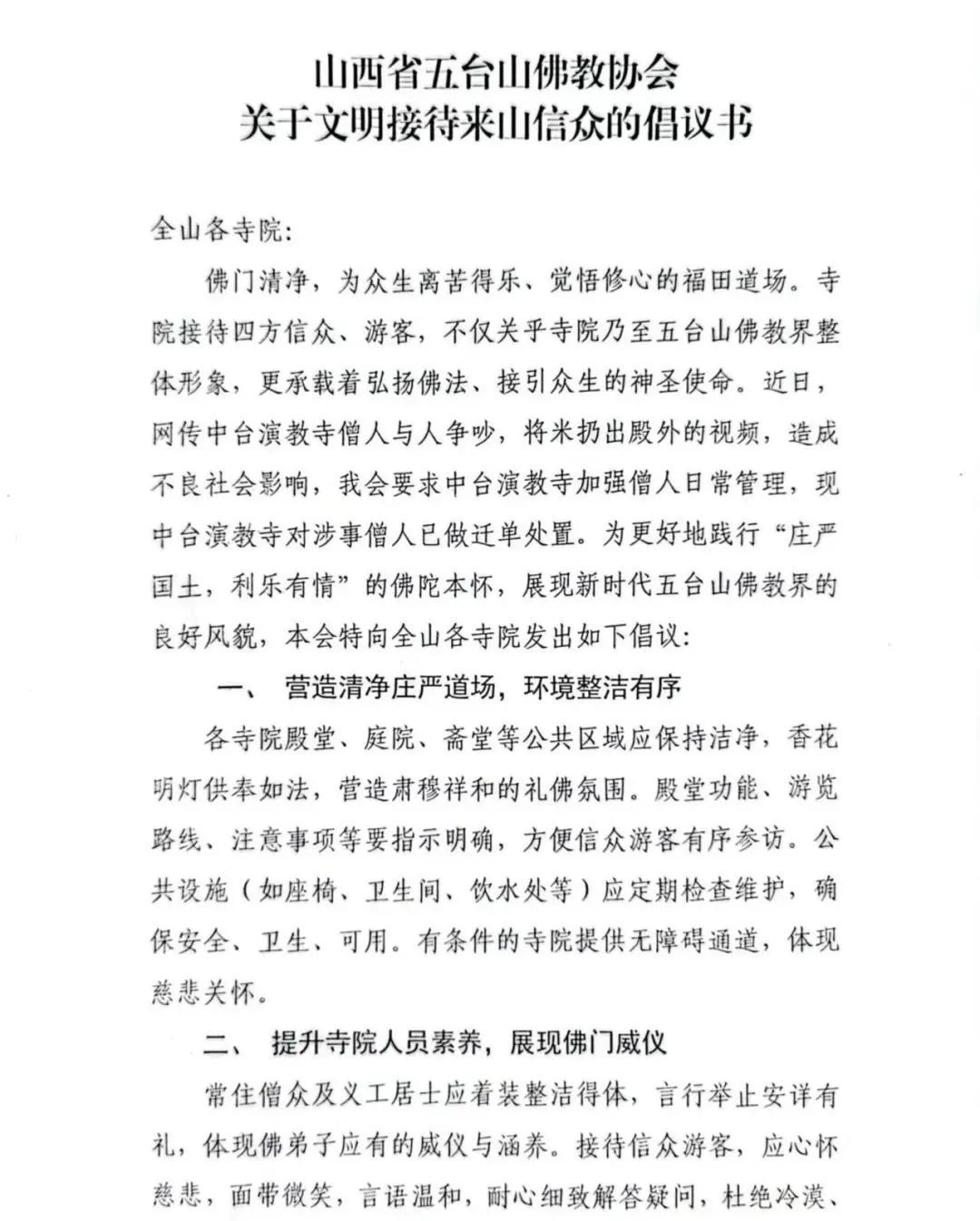 山西省五臺山佛教協(xié)會關(guān)于文明接待來山信眾的倡議書
