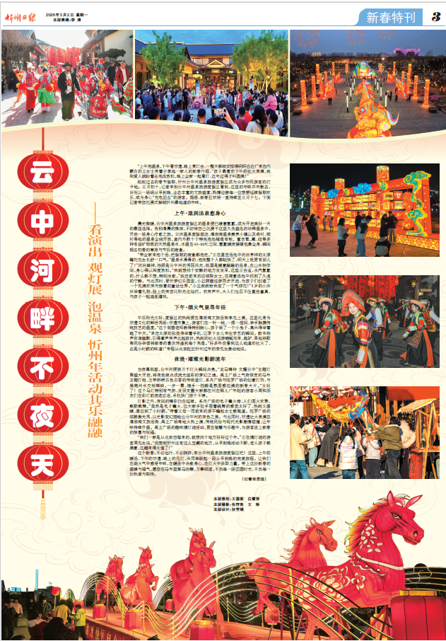 “上午泡溫泉,下午看非遺,晚上賞燈會(huì),一整天都被安排得明明白白!”來(lái)自內(nèi)蒙古的王女士笑著分享她一家人的新春行程,“孩子最喜歡下午的社火表演,我和愛人就盼著去泡湯放松,晚上全家一起看燈,這年過(guò)得才叫圓滿!”