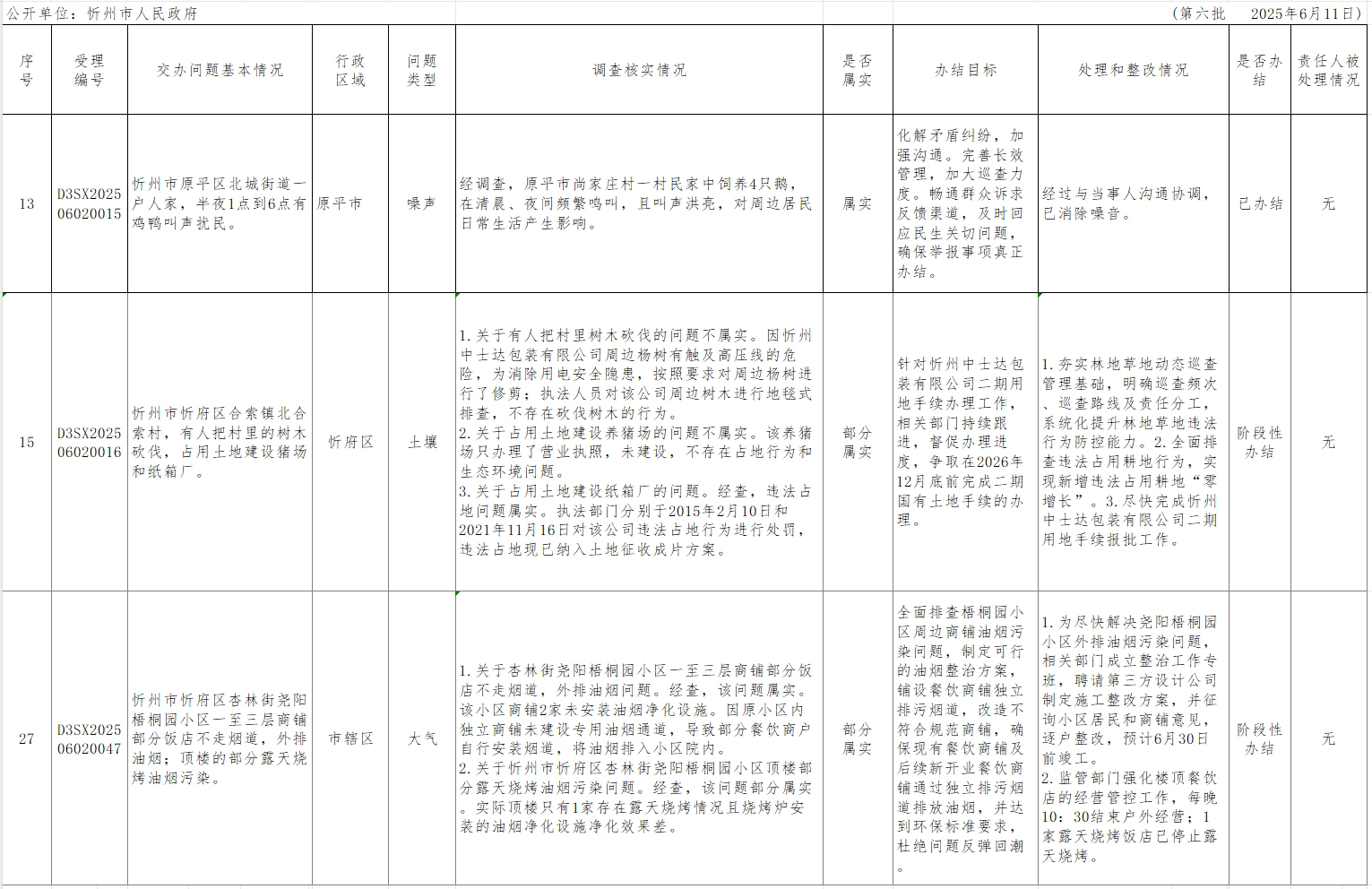 中央生態(tài)環(huán)境保護(hù)督察組群眾信訪舉報(bào)轉(zhuǎn)辦和邊督邊改公開情況一覽表